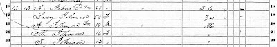 Absalom's wife Lucy died in 1860. The census record for that year shows Absalom as head of household with Matilda, age 24 and Lucy, age 18. His wife, Lucy, is not listed on the census. Absalom is not found on the census for 1870, leaving me to speculate that he died sometime between 1860 and 1870.
